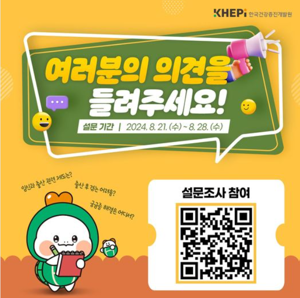 한국건강증진개발원 설문조사 이벤트 참여하고 이디야커피 받아 가세요! - 참여방법 1. KHEPI 페이스북 팔로우(하단 페이스북) 2. 설문 참여(하단 구글폼) 3. 댓글로 '참여완료' 남기기 - 참여기간 : 2024. 8. 21.(수) ~ 8. 28.(수)- 당첨발표 : 2024. 9. 5.(목) - 당첨선물 : 이디야커피 아메리카노L (100명) (페이스북)한국건강증진개발원 - 🧡매거진 더(The) 건강 설문조사 이벤트 출산 후 겪는 어려움? 궁금증 해결은... | Facebook 한국건강증진개발원🧡매거진 더(The) 건강 설문조사 이벤트 출산 후 겪는 어려움? 궁금증 해결은 어디서? 👂여러분의 의견을 들려주세요! 🗓이벤트 기간: 2024. 8. 21. (수) ~ 8. 28. (수) 👏참여..